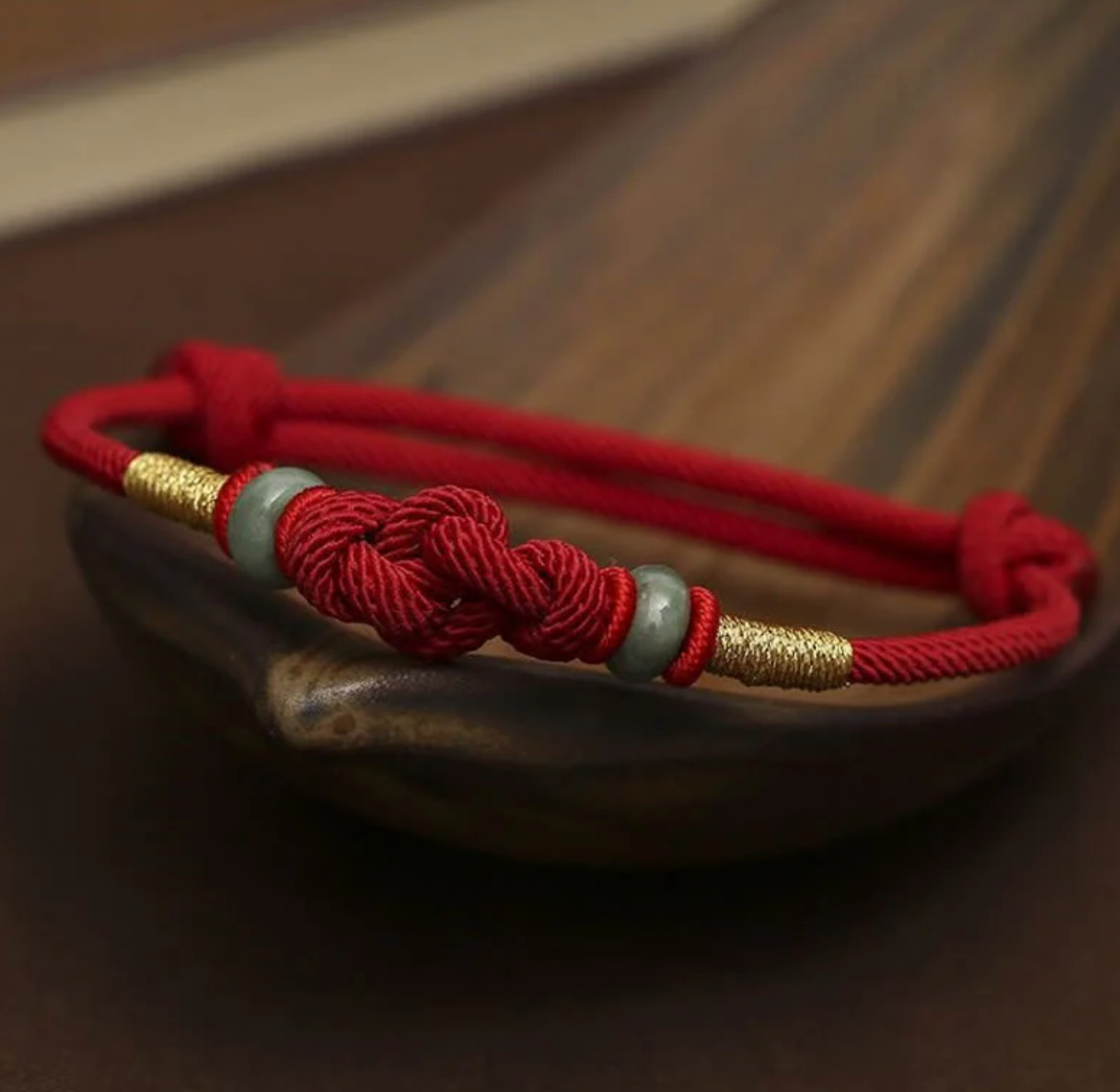 Red Thread of Fate Bracelet – Jade & Gold Woven Blessing